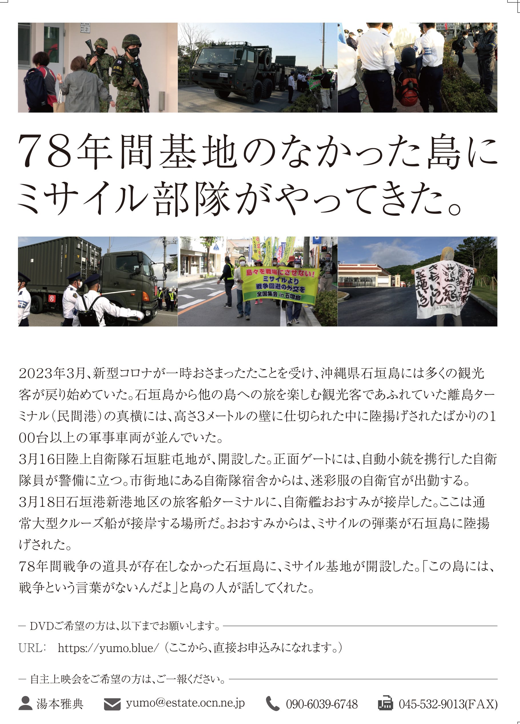78年間戦争の道具が存在しなかった石垣島に、ミサイル基地が開設した。「この島には、戦争という言葉がないんだよ」と島の人が話してくれた。